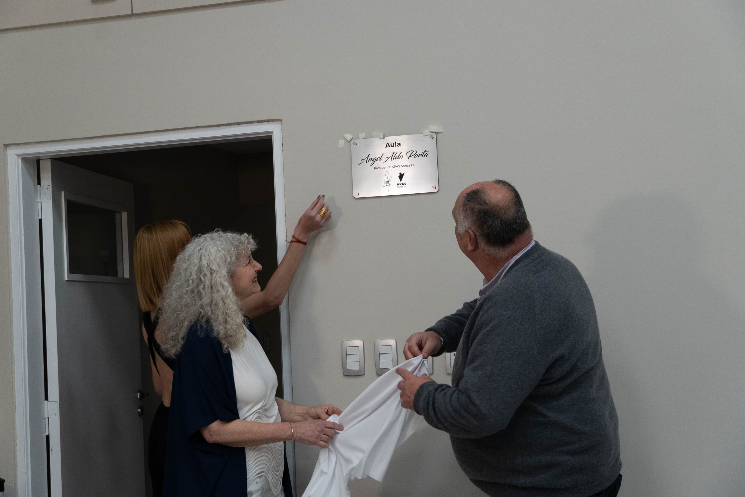 Por último, se dio a conocer el nuevo nombre para el salón de capacitaciones: “Ángel Aldo Porta”, en homenaje a quien en la década del ’90 reuniera a todos los productores y asesores de Santa Fe para volver a posicionar a la Asociación como el ente que nucleara a todos los productores y defendiera sus derechos. APAS Santa Fe tenía pocos socios para ese entonces y fue Ángel Porta quien alquiló una oficina y puso a funcionar la institución para acompañar a los productores y asesores en su actividad, en su profesión y trabajar codo a codo entre todos los asociados. Descubrieron la placa sus familiares.