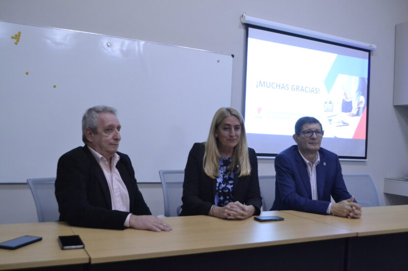 El presidente de APAS Santa Fe, Mario Assenza, junto a Agustina Decarre, presidente de la Federación de Asociaciones de Productores Asesores de Seguros de Argentina y Jorge Zottos, presidente del Ente Cooperador Ley 22.400, dieron una conferencia para hablar en detalle sobre los nueve artículos de la norma.