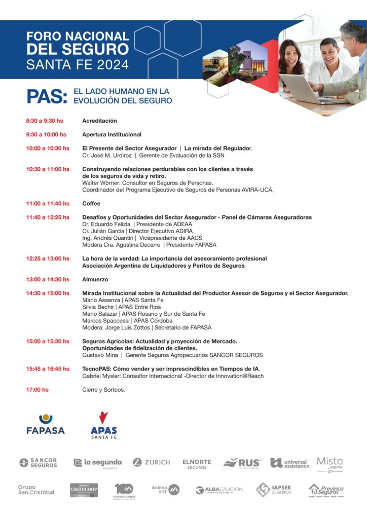La próxima semana se realizará el Foro Nacional del Seguro en la ciudad de Santa Fe. Enterate cuáles son los temas y oradores del evento, que forma parte de las actividades para celebrar los 50 años de vida de la Asociación de Productores Asesores de Seguros de Santa Fe.